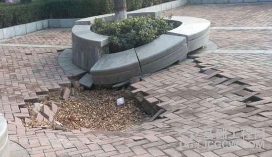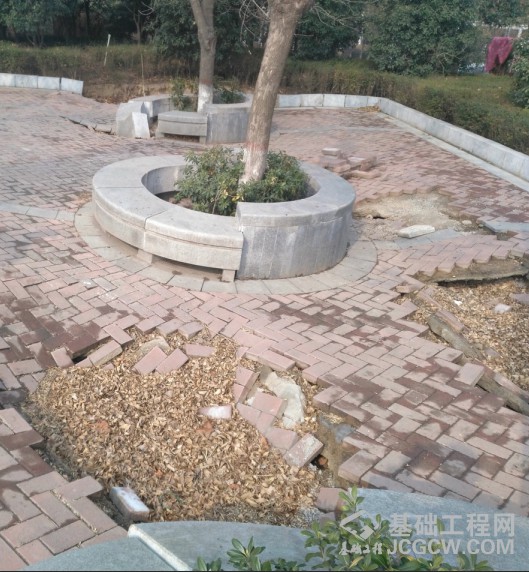 3月9日,读者王建发向记者反映:位于郑州市化工路与西四环交叉口西侧的一个小游园内,有近百平方米的地面出现不同程度沉降,导致三座用大理石砌出的小花坛断裂损坏,地面上铺设的红色地砖大量松动脱落。