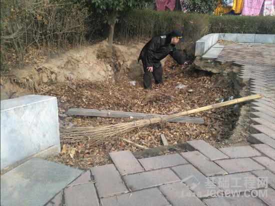 郑州一小游园内地面发生沉降 或因雨水浸泡所致
