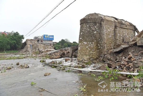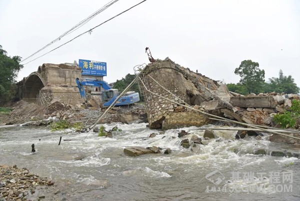广东阳春市一大桥施工现场坍塌 造成工人1死3伤