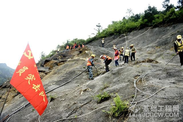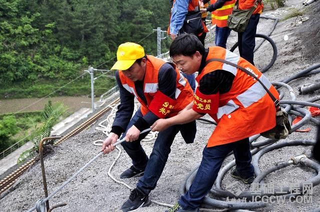 核心提示:发生边坡溜塌的贵开铁路现场认真检查病害山体多处出现裂纹党旗飘扬在抢险工地 5月8日8时36分,中国铁路成都局集团公司贵阳工务