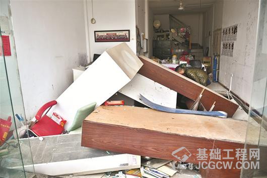 李先生的店在小区5栋,租用了临街的两层楼作为推拿按摩店的门面,楼下经营,楼上住家。1月7日上午10时许,记者来到现场看到,推拿按摩店一楼约40平方米,塌陷的面积约有20平方米,店里的家具、空调都倒了,店内一片狼藉。