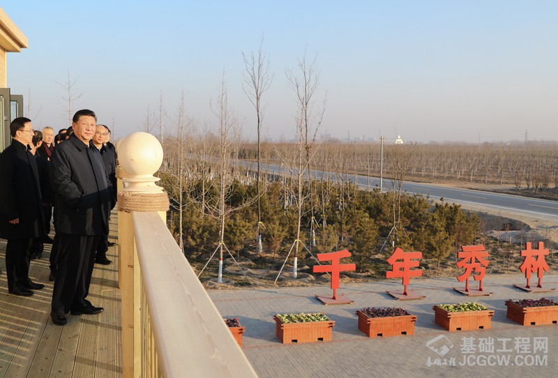 雄安新区坚持生态优先、绿色发展,率先启动生态基础设施建设和环境整治,目前已完成11万亩“千年秀林”建设。16日下午,习近平总书记来到“千年秀林”大清河片林一区造林区域,乘车穿行林区察看林木长势,登上秀林驿站二层平台远眺林区全貌,同当地护林员代表亲切交流。他说,蓝天、碧水、绿树,蓝绿交织,将来生活的最高标准就是生态好。雄安新区过去有一定的基础,现在搞“千年秀林”,将来这里一定是最宜居的地方。绿水青山就是金山银山,雄安新区就要靠这样的生态环境来体现价值、增加吸引力。