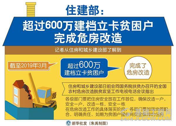 记者从住房和城乡建设部了解到,近年来农村危房改造工作取得了实质性进展,截至2019年3月,超过600万建档立卡贫困户完成了危房改造。