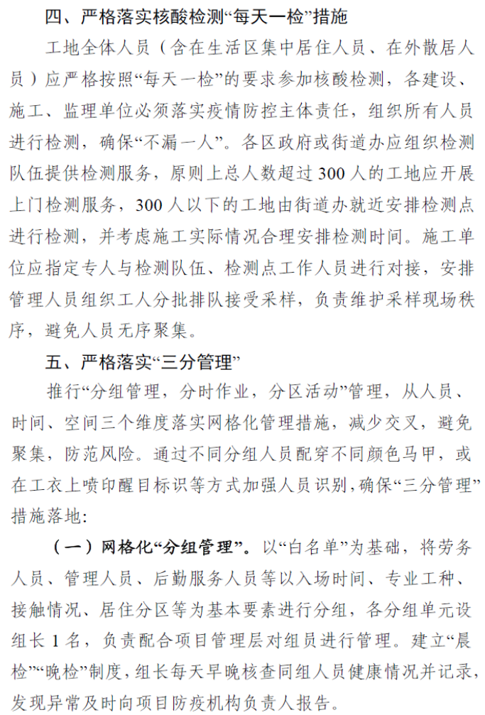 前段时间,上海市住建委发布《关于进一步加强本市建筑工地疫情防控工作的通知》,也提出了类似的要求。