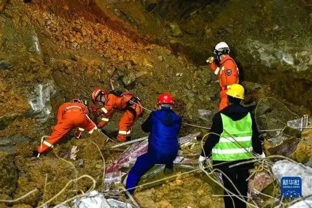 2022年1月4日凌晨,搜救人员在山体滑坡现场展开搜救。新华社 资料图