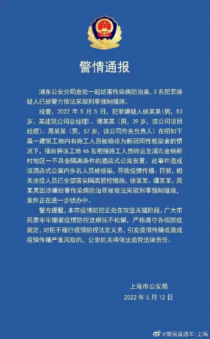 上海:引发疫情传播,一建筑公司总经理、项目经理等3人被采取刑事措施!