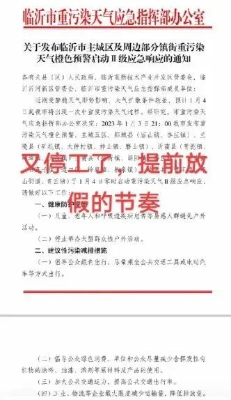 2023年1月3日21:00,临沂发布重污染天气橙色预警于2023年1月4日0:00启动重污染天气Ⅱ级应急响应。