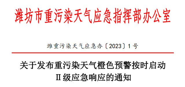 2023年1月3日10时,潍坊市发布重污染天气橙色预警,1月3日12时启动Ⅱ级应急响应。现将有关要求通知如下: