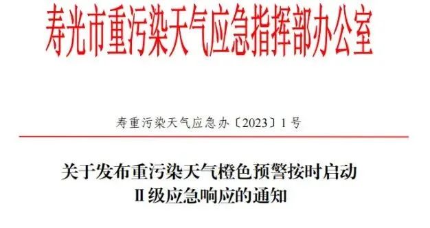 2023年1月3日10时,寿光市发布重污染天气橙色预警,1月3日12时启动Ⅱ级应急响应。应急响应期间: