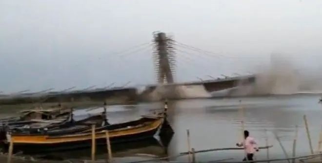 据《今日印度》报道,当地时间周日下午6点左右,印度比哈尔邦在建的横跨恒河的阿格瓦尼-苏丹甘吉大桥再次发生坍塌,现场的目击者拍下了坍塌的画面。