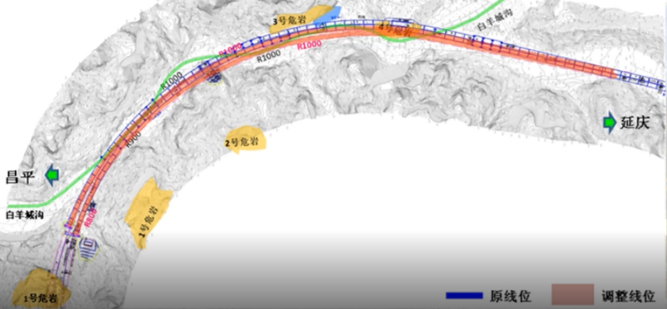 3号危岩体为地灾主要控制区域,在鱼塘位置危岩体距离线位较近,存在安全隐患,为确保安全,施工图阶段将线位向东侧微调。据3#危岩体的落石轨迹模拟绘图,大桥向东移位8m,降低落石对桥梁的灾害影响,如图9所示。