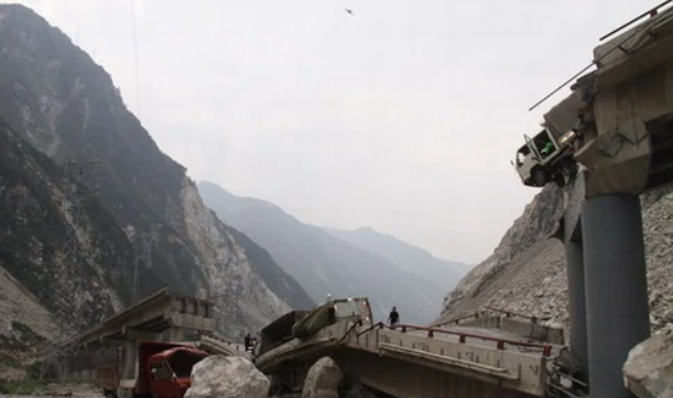 (2)汉旺桥梁垮塌(山体滑坡导致桥梁倒塌)