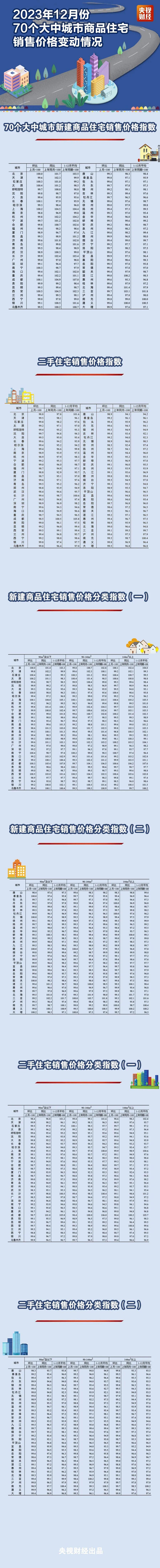 核心提示:2023年12月份,70个大中城市中,各线城市商品住宅销售价格环比下降、同比有涨有降。