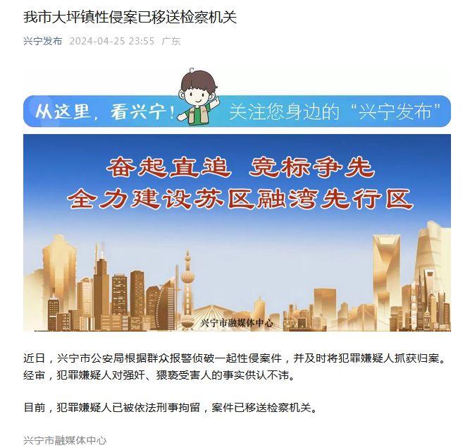 广东兴宁市大坪镇性侵案已移送检察机关