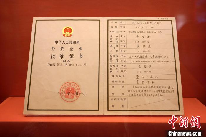 时隔38年,台商黄益建仍对自己拿到编号为“001号”的外资企业批准证书,念念不忘。