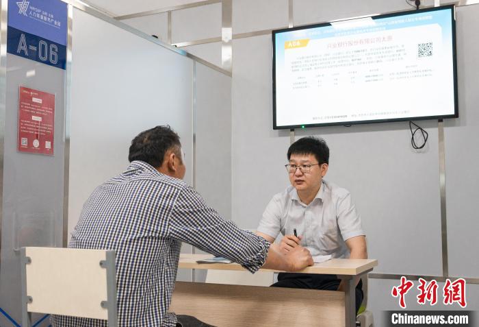 助残日期间,走进山西太原人力资源服务产业园,前来参与招聘的残疾人正询问相关事宜。