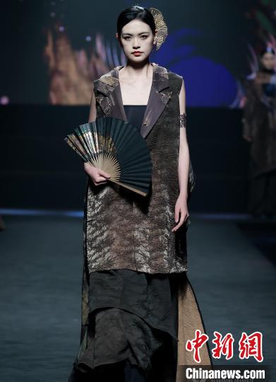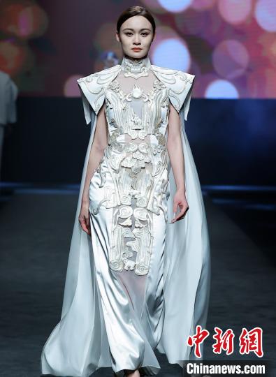 第19届中国(广东)大学生时装周(简称:广东大学生时装周)30日晚闭幕,12天的活动中,28所广东服装专业院校的逾千名设计新秀登上“实现梦想的天桥”。图为时装周参赛设计作品。