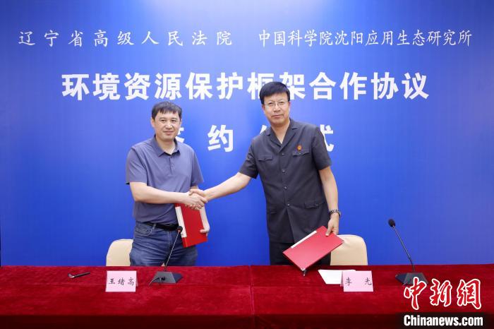 6月3日,辽宁省高级人民法院与中国科学院沈阳应用生态研究所签署《环境资源保护合作框架协议》现场。