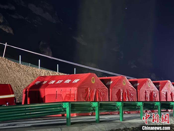 图为现场搭建的消防救援帐篷。祁绣娟摄