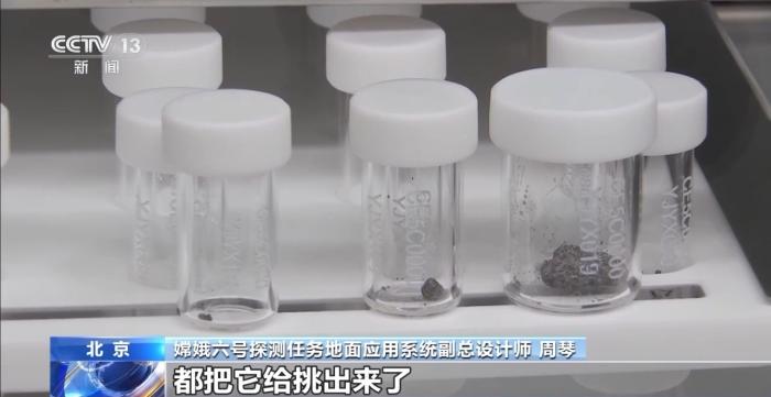 嫦娥六号探测任务地面应用系统副总设计师 周琴:差不多大于一个毫米的岩屑颗粒都挑出来了。当时在嫦娥五号铲取样品里面发现的最大的一个岩屑,大概有1.5厘米,差不多大拇指甲盖这么大。从肉眼上就可以看到,应该是目前获得的最年轻的月海玄武岩的岩石类型。它是非常珍贵的,能够展开更丰富、更全面的综合研究。