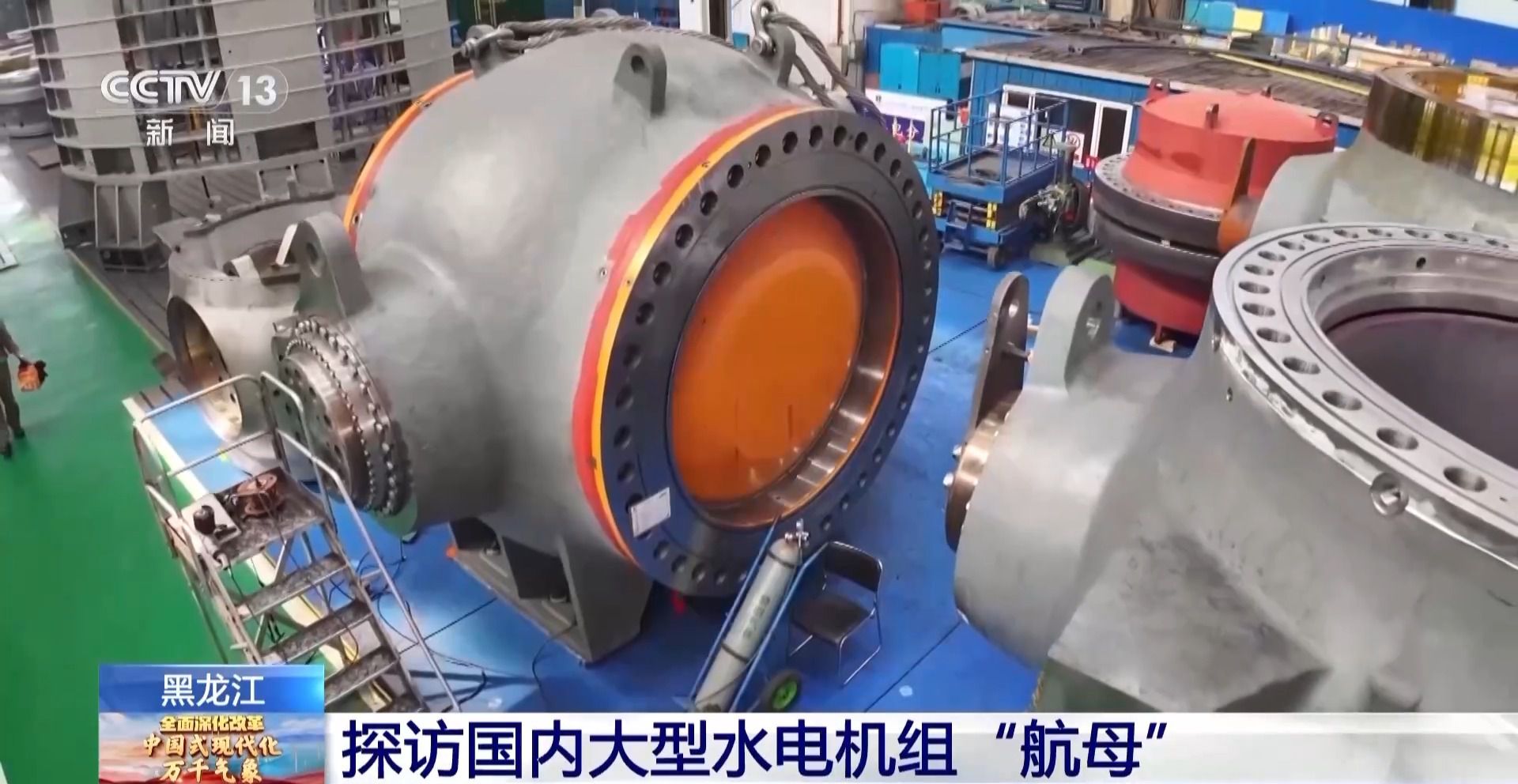 哈电集团电机公司智能制造工艺部副经理 杨思晋:为了保证球阀在带水情况下频繁开关,和关闭状态下“零渗漏”,整个球阀的上下游和活门,加工精度达到0.05mm,也就是说,如此庞然大物关键加工精度小于一根头发丝的直径。