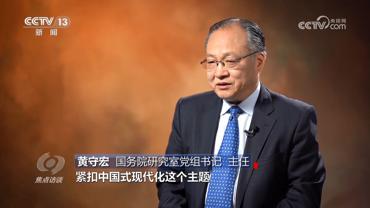 国务院研究室党组书记、主任黄守宏:“进一步全面深化改革总目标,体现党的二十大作出的战略部署,紧扣中国式现代化这个主题,彰显了围绕党的中心任务谋划推动改革这一党的领导改革的成功经验,也是对党的十八届三中全会提出的改革总目标的丰富和发展。”
