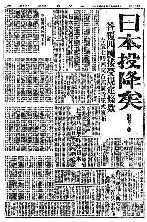 核心提示:1945年8月15日,日本电台播出裕仁天皇宣读的《终战诏书》,日本宣布无条件投降。“日本投降了!我们胜利了!”那一天,无数中华儿女欢呼雀跃,喜极而泣,欢庆的人群挤满了大街小巷人人脸上洋溢着幸福和喜悦,历经14年的抗日战争,终于赢得了胜利。