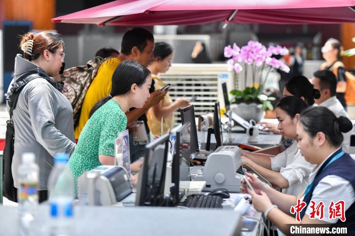 9月8日,海南海口,旅客在机场值机柜台询问航班执飞计划。