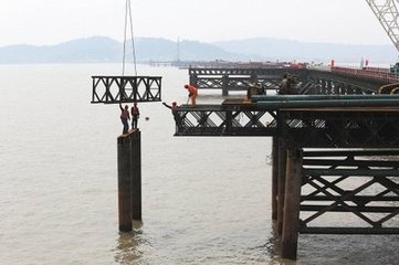 乐清湾大桥1号桥施工栈桥完工在即