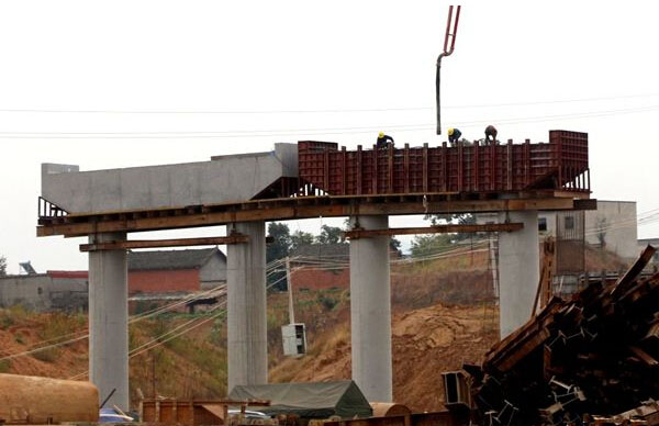 十堰市郧阳沧浪洲汉江大桥首座桥墩盖梁开建