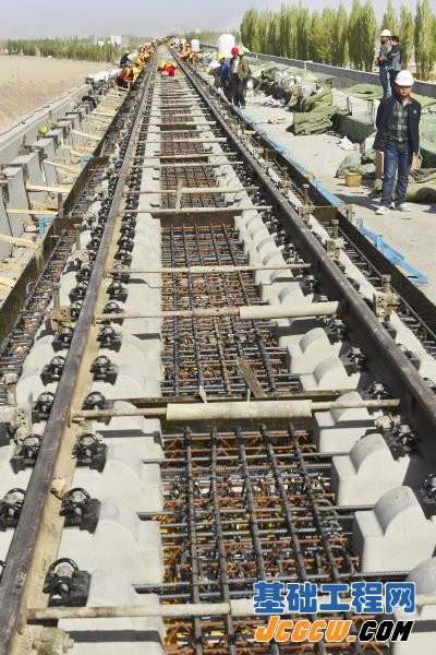 据悉,无砟轨道施工工艺复杂,几何尺寸精度高,在新疆干旱、大风、大温差条件下,可有效提高混凝土的抗裂性、耐久性。兰新铁路新疆公司工程技术人员经反复研究混凝土配合比、灌注工艺和养护技术,终于解决了混凝土容易开裂的难题,对风蚀地区新型混凝土表面抗风蚀界面处理材料的研究,也取得了预期效果。