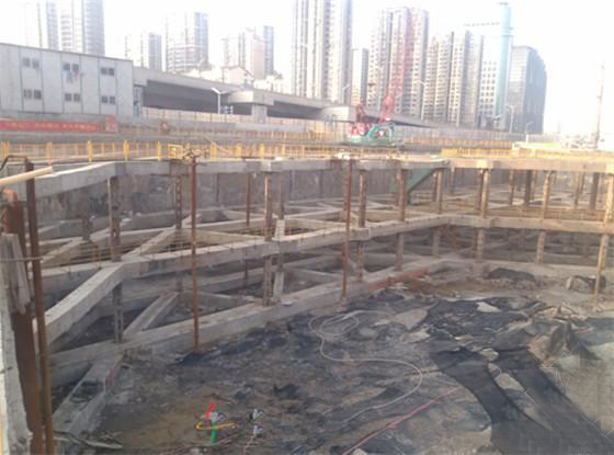 除此之外,在基坑内部,自上而下设置了四道钢筋混凝土支撑,四道支撑的总工程额也近8000万元。随着地下室结构的施工,这四道支撑随后是需要全部拆除的。可谓不惜代价了。但这样一来,深基坑却是固若金汤。设计阶段开始施工单位就与地铁公司保持了密切联系,多次召开了专家评审会,对每一项关系到地铁及周边建筑安全的设计、施工方案都进行了专家评审,并将专家意见都融入到了实际的工程之中。