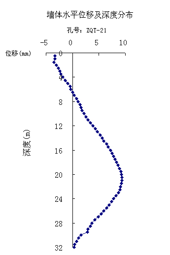 紫荆山站主体基坑开挖对周边地表的影响在-12mm~4mm之间(控制值30mm),墙体水平位移变形大多在10mm以内(控制值40mm),具体见图4.2.1和图4.2.2。