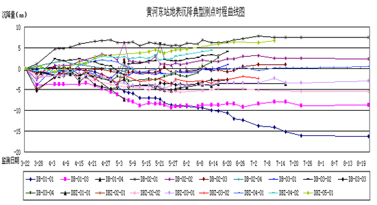 图4.3.1 黄河东路站地表沉降典型测点时程曲线图