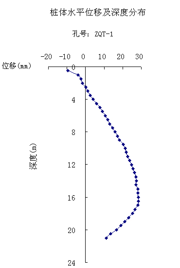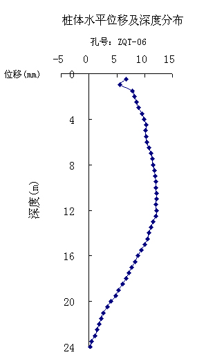 图4.1.2桩体水平位移典型测点累计变形分布图