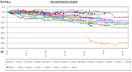 图4.4.1 广播台站地表沉降典型测点时程曲线图