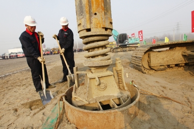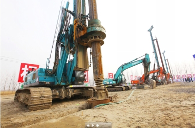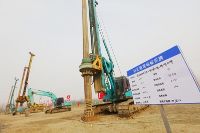 中铁航空港连淮扬镇项目安全总监刘信星介绍,大型旋挖钻是钻桩用的,分为做桩基、放钢筋笼、灌桩等多道工序,“铁路的设计一般都比公路保险系数更大,因为上面跑的是火车,载重比较大,要求也比较高。”