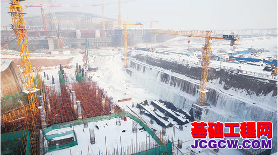 中铁三局乌鲁木齐高铁新客站市政配套设施项目02标项目负责人卜宪龙说:“在我们参与的几十项地铁工程中,这个是最大的基坑,所以难度非常大。基坑在土方开挖与支护过程中每天都要定期监测,控制基坑变形。工程是2014年5月19日开工的,由于换乘站是个明挖车站,考虑到天气的因素,目前已经停工,计划3月初复工。”