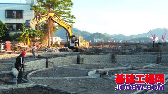 核心提示:侨批记忆广场已完成桩基础施工,工人们仍在继续建设中。