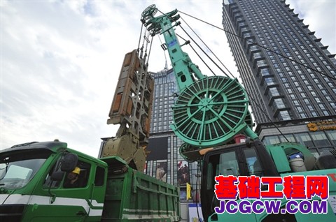在狮山路站施工现场,一台大型的成槽机正不停地用抓斗挖取地下的泥土。附近的场地上,堆放着一只巨大的钢筋笼,高29.25米、长6米、宽0.8米。据介绍,这台成槽机抓斗的宽度为2.8米,大约八九个小时,就可以挖出一个巨大的坑,以放置钢筋笼。为了保证把已扎好的钢筋笼放进去,成槽机的开挖深度将达到30.5米。整个狮山路站将设置104扇这样的地下连续墙。