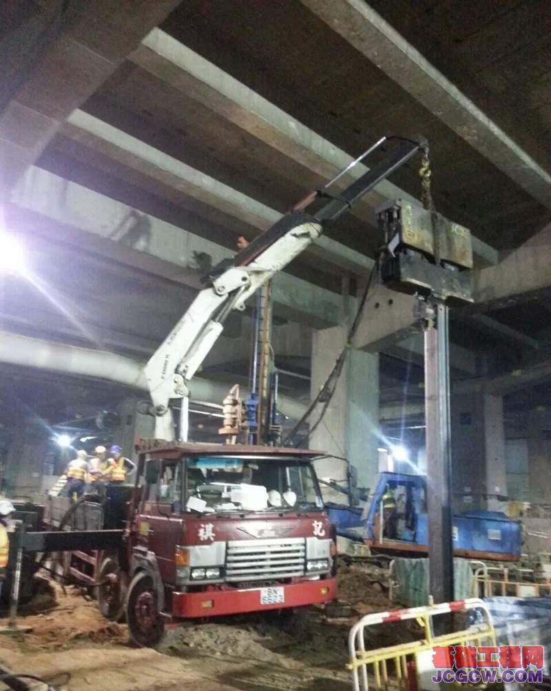 在香港红磡站和体育馆大型建筑底下有大量改造项目,其中含排水系统的升级,毗邻此处,需要打入钢板桩,最重要的是打桩不能对现有的红磡站产生任何影响。该项目工程授予弘讯顾问工程公司施工,这家公司采用挖机锤同特殊的低净空高度起重机配合的施工方案。