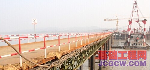 据工作人员介绍,北引桥共8联。长1695米,第一联至第四联采用预制板安装,第五联采用挂篮悬浇施工,第6联至第8联采用移动模架现浇施工。此次浇筑完成的第8联长45米,宽16米,粱高3.2米。