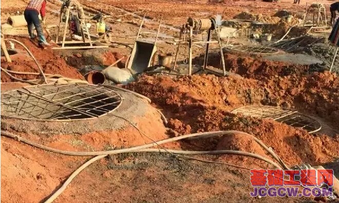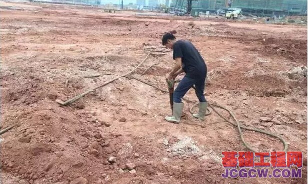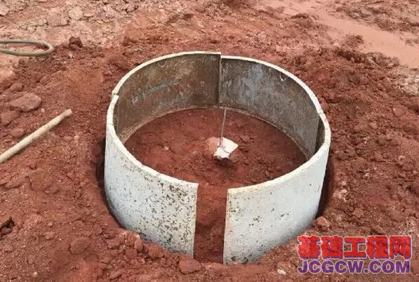 测好桩心,放好桩孔,开始挖土。