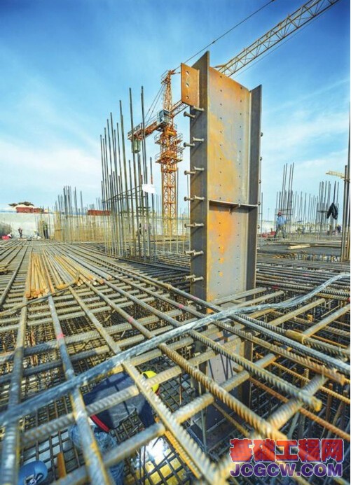 记者看到,在一片“螺纹钢”搭建的钢筋格网下,工人们对一块截面为“H”形的钢柱进行电焊,火花四溅。原来,这种是高建钢柱,俗称“钢骨柱”,它就像是钢筋森林中的参天大树,是支撑起整个建筑物的核心。林松军说,我们通过把钢柱固定在地基钢筋层中,起到加固平衡的作用。中原安置小区基本为27层以上的高层建筑,只有搭建坚固的地基,才能使楼体稳稳地承受住风力等横向作用力。