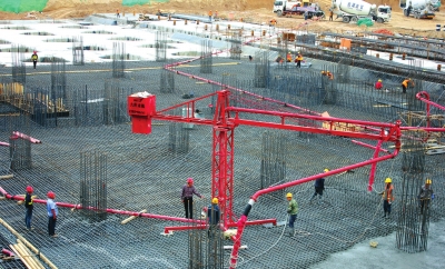 核心提示:此次浇筑的北广场及地下空间为西区底板3号段,结构东西长56.4米,南北宽62.5米。其中包含30个三桩承台、5个两桩承台;7个集水 坑、1个扶梯基坑、42个柱子,2条56.4米基础梁,共需混凝土方量约3525立方米,面积达4000平方米,属于大体积混凝土浇筑。