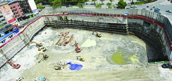 目前,基坑深15.7米,横截面积为90米×80米,已完成2/3,现在进入岩石最难开挖面。预计6月初完成基坑建设,深度将达20.88米,计划挖土石18万方,可装满12000辆卡车,是我市城区超高层建筑开挖的最深基坑工程。
