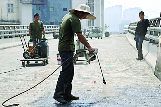 据记者了解,这座高架桥路面采用的防水材料,完全由国人自主研发。其主要成分为天然沥青、石油沥青,还加入了石油基活性反应物质。这种材料不会因施工车辆、设备而遭到破坏,耐久性也比同类传统材料长5到7年。