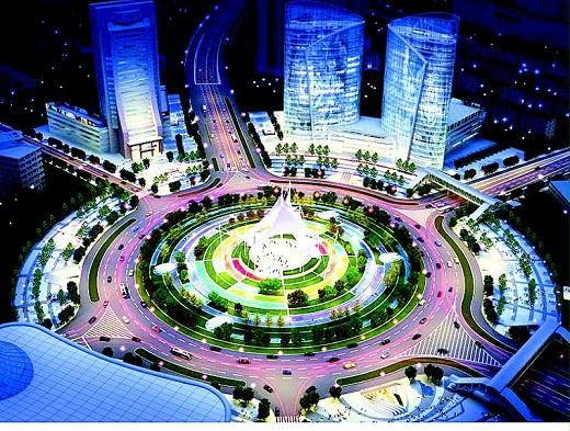 这个亚洲市政综合体工地,好似一个圆盘,周边的市政路面上,车水马龙的车辆,紧紧包围着圆盘工地。