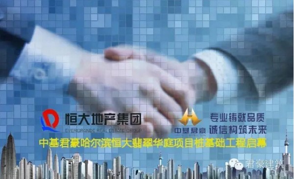 2015年6月9日,中基君豪哈尔滨恒大翡翠华庭项目样板楼栋及周边商业桩基础工程(预制桩)工程开工,牵手恒大地产,这是中基君豪在地产桩基市场营销的又一成功典范。