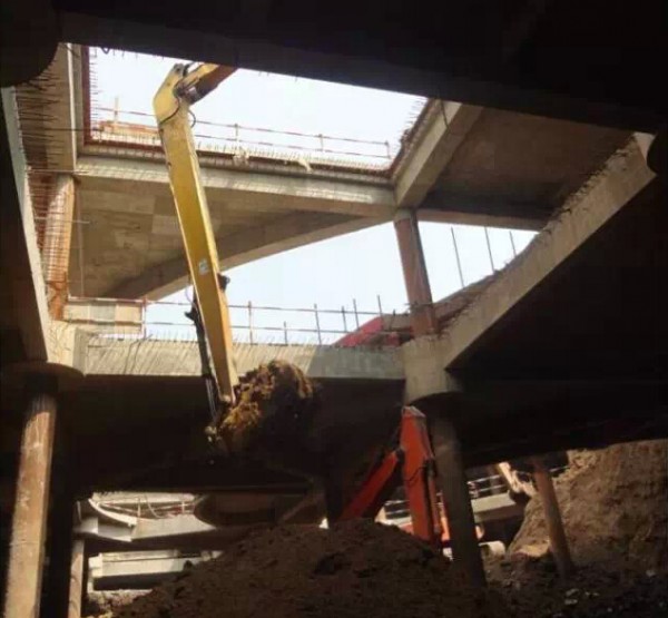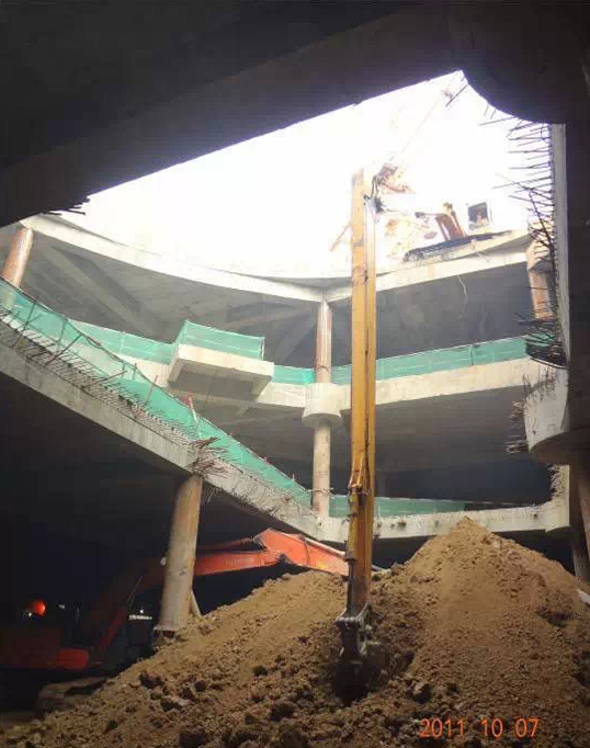 3、土方暗挖,挖机容易碰撞钢立柱、预留插筋等,造成损失。
